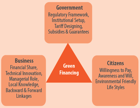 The principal areas of focus in the current green financing efforts include: